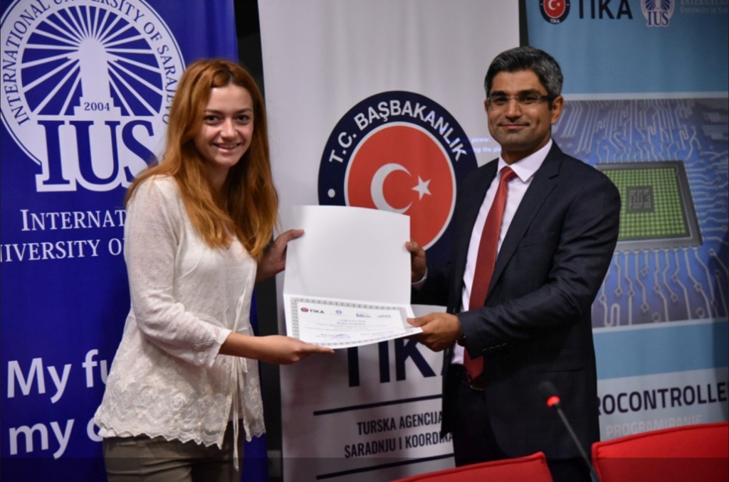 Free “Microcontrollers” and” Solidworks – 3D Modelling” courses, held from August 1 to September 15, 2017 at the International University of Sarajevo (IUS), were successfully completed by 28 participants who were today awarded with certificates.