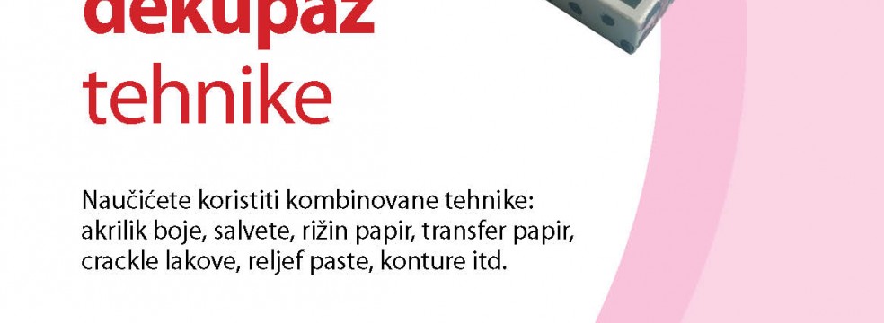 IUS Life pokreće radionicu dekupaža. Naučićete koristiti kombinovane tehnike: akrilik boje, salvete, rižin papir, transfer papir, crackle lakove, reljef paste, konture itd.