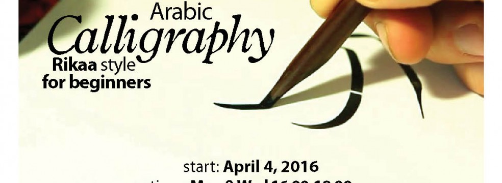 Arabic Calligraphy 100 KM LevelBeginner Start Date04th April 2016 Duration30 hours ClassesMon & Wed 16.00-18.00 Last Registration04th April 2016Arabic Calligraphy Registrations are over for this course.
