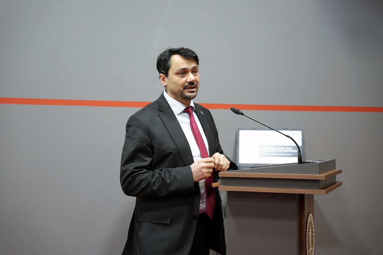 The program continued with presentations by the Vice-Rectors, each offering an overview of important priorities within their respective areas of responsibility. Associate Prof. Dr. Tarik Namas, Vice-Rector for Academic Activities and Students’ Affairs, spoke about the broad scope of academic coordination and student-related processes, while also pointing to several areas identified for further improvement in the period ahead. Associate Prof. Dr. Kanita Karađuzović-Hadžiabdić, Vice-Rector for International Cooperation and Research, presented a review of key developments and priorities over the past five years, with a focus on research, internationalization, accreditation, digitalization, and future planning. Associate Prof. Muhammed Yasir Göz, MA, Vice-Rector for General Affairs, emphasized the importance of efficiency, clear coordination, practical problem-solving, and continued development in areas related to partnerships, infrastructure, student experience, and community building.