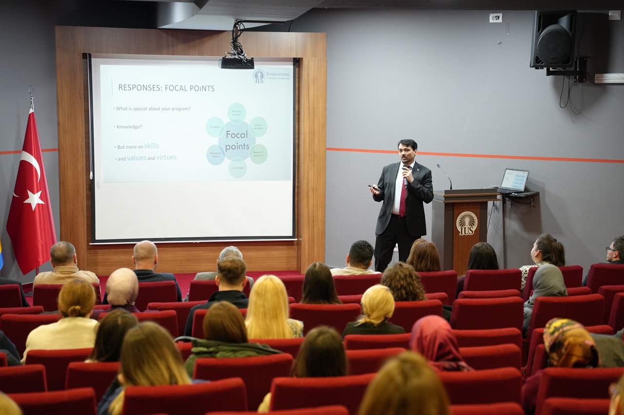 The event opened with remarks by the IUS Rector, Prof. Dr. Ali Osman Kuşakcı, who addressed key contemporary challenges affecting higher education, including artificial intelligence and demographic changes. He also spoke about the University’s response to these developments through training, the improvement of teaching methods, the updating of study programs and curricula, digitalization, interdisciplinary approaches, and a stronger contribution to society.