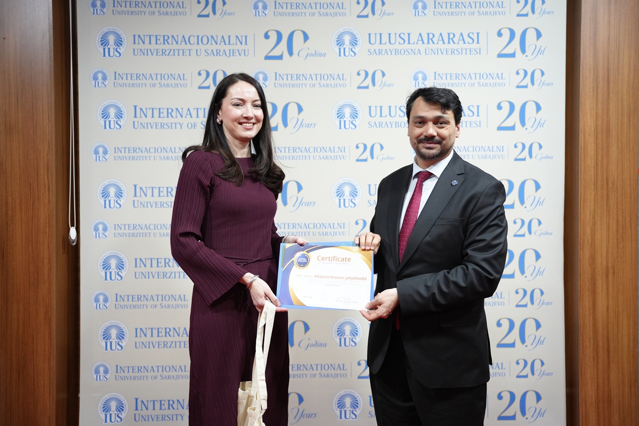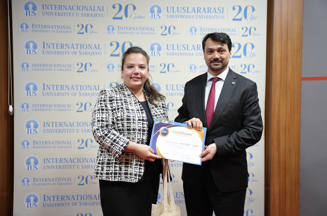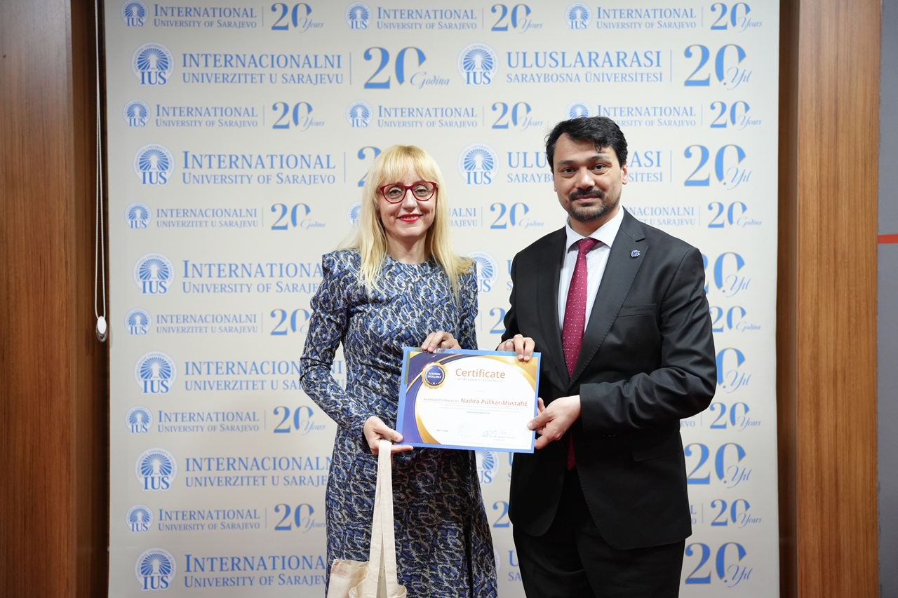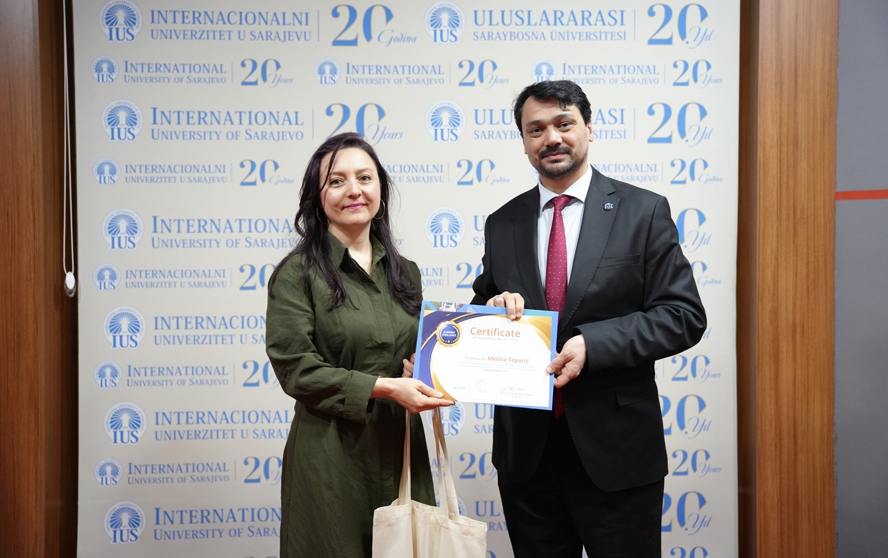 The program also included a special posthumous recognition dedicated to the memory of Emina Lagumdžija. Through the Certificate of Posthumous Recognition and Academic Excellence, IUS honored her lasting contribution as an educator and the meaningful impact she left on her students and colleagues. Her kindness, professionalism, and devotion to teaching remain an important part of the University’s legacy.