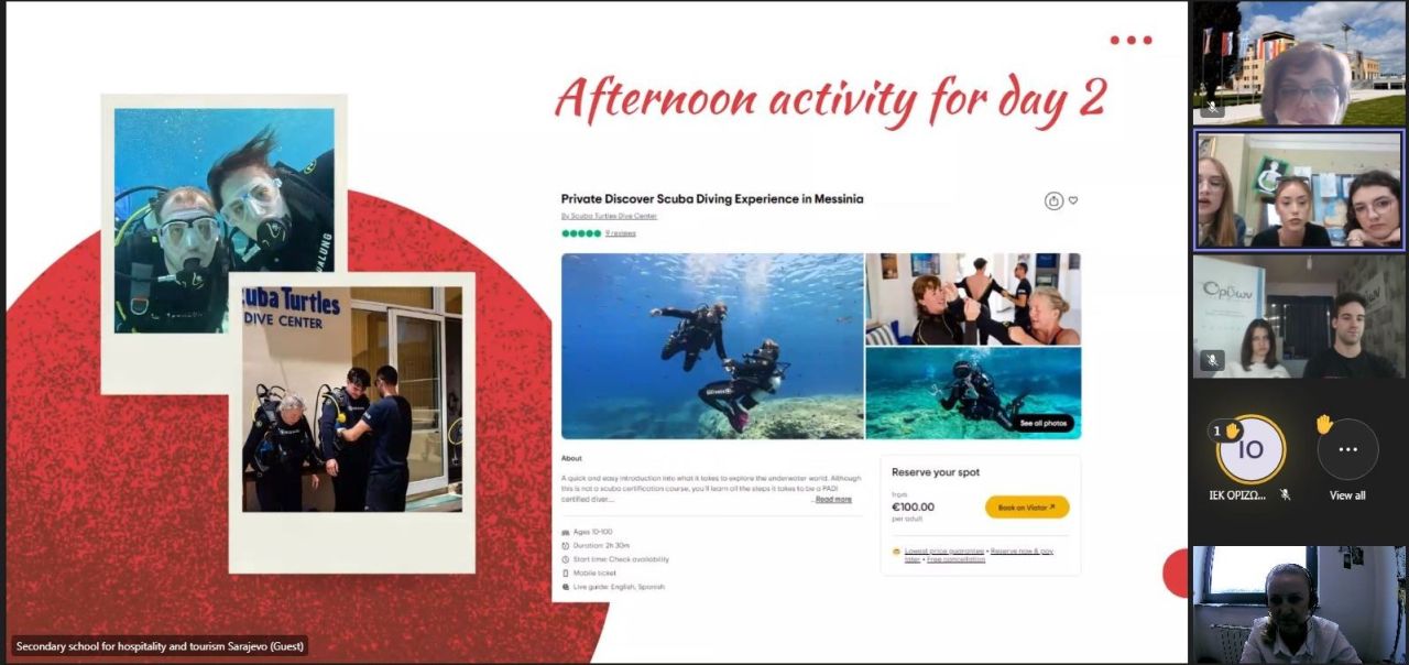Students from Portugal, Bosnia and Herzegovina, and Greece had the task of presenting the cities of their peers as tourist destinations that can be attractive for a sustainable city trip. In their presentations, the students focused on low-cost transport, affordable gastronomic offers, tourist hot spots, and free activities for potential tourists. According to the decision of peer voting, the winner was the team from Escola de Hotelaria de Fátima - EHF, Fatima, Portugal with their presentation Sarajevo - a three-day trip!