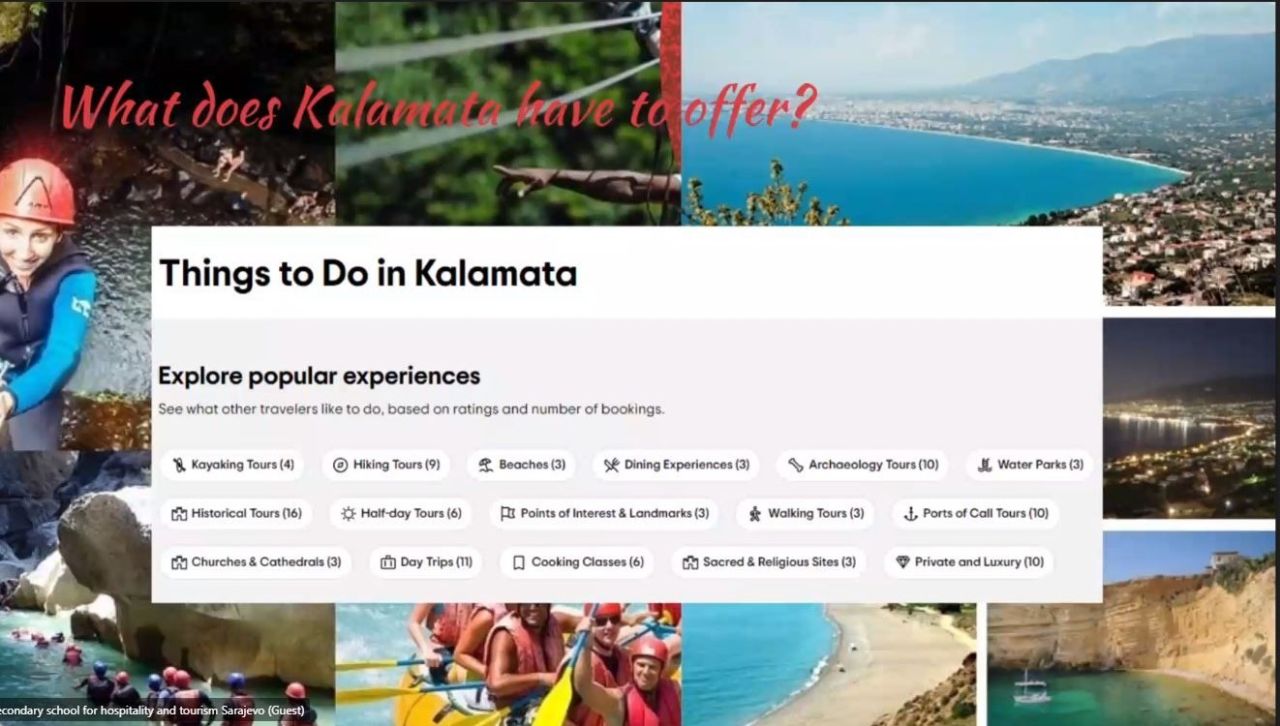 Special thanks to BH team members Ilma Mutapčić, Iman Bešić, Sara Muzaferija from High School for Catering and Tourism, Sarajevo, for winning the second place, but above all for the excellent presentation of Kalamata, a city located on the Peloponnese peninsula. You made us proud!