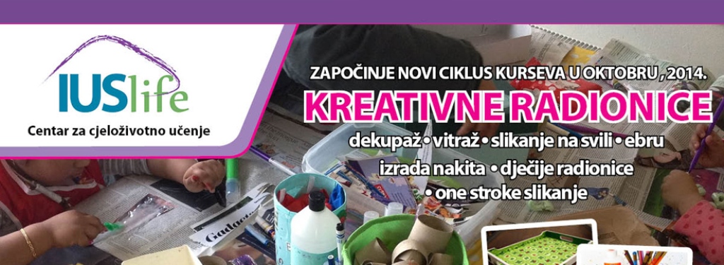 Kreativne radionice 100 KM LevelPočetni Start Date20th November 2014 Duration4 sedmice Classesod 19-17h, dva dana sedmično Last Registration17th November 2014Kreativne radionice Registrations are over for this course.