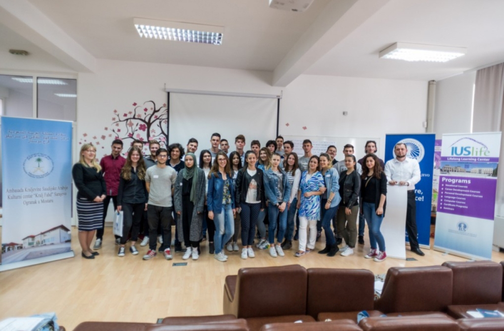 On Saturday, April 1, 2017, IUSLife conducted a three-hour workshop for thirty students from six high schools in Mostar. It was hosted by the “King Fahd” Cultural Center in Mostar and held by Elmedin Zubović, MA – one of the English language instructors at IUS. This workshop is the follow-up workshop to the one carried out on January 28 which dealt with preparation for the listening and reading sections of standardized English language tests, such as TOEFL and IELTS. However, this time the workshop dealt with the improvement of students’ speaking and writing skills across different styles and registers. Throughout the workshop, students had a chance to take part in hands-on speaking and writing activities, such as conducting formal and informal interviews, analyzing and writing reports, discussing and writing poems, and many more.