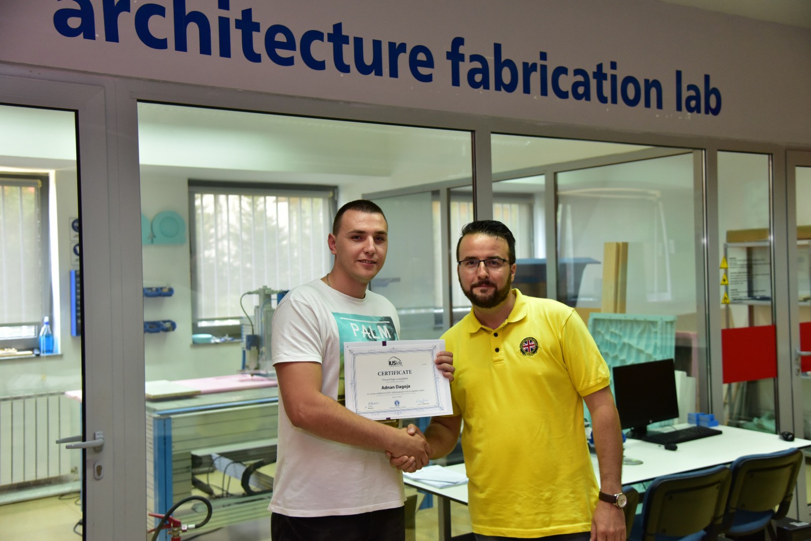 4 Ağustos 2017 Perşembe günü Uluslararası Saraybosna Üniversitesi mimarlık laboratuvarında bir CNC operatörlüğü programı daha tamamlandı. 6 hafta süren program dahilinde teorik başlangıç, yazılım üzerinden eğitim ve CNC ve CO2 lazeri ile grup ve bireysel çalışmaları yapıldı. Bosna Hersek’in yedi farklı bölgesinden gelen katılımcılara setifikaları takdim edildi. 11.si düzenlenen programın organizatörü ve eğitmeni Adnan Škulj’e katkılarından dolayı teşekkür ediyoruz.