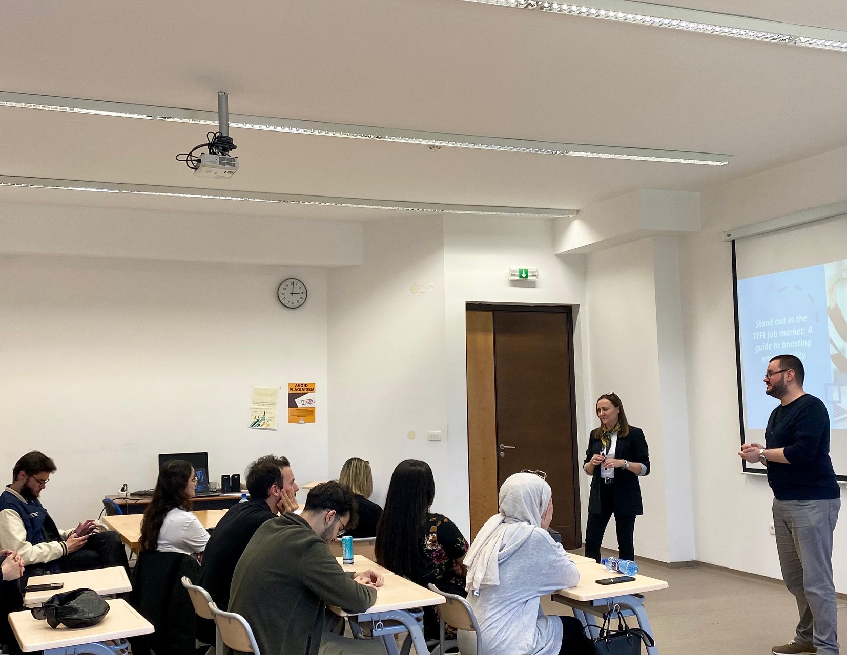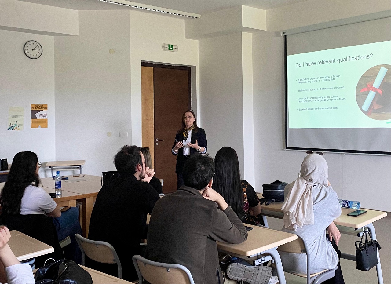 Sayın Karić, “TEFL İş Piyasasında Öne Çıkmak: İstihdam Edilebilirliği Artırma Rehberi” başlıklı bir sunum gerçekleştirmiştir. Konuşmasında, Yabancı Dil Olarak İngilizce Öğretimi (TEFL) alanında başarılı bir eğitimci olabilmek için gerekli donanımları ele almış ve öğrencilere çok sayıda pratik tavsiye ile pzrofesyonel rehberlik sunmuştur.