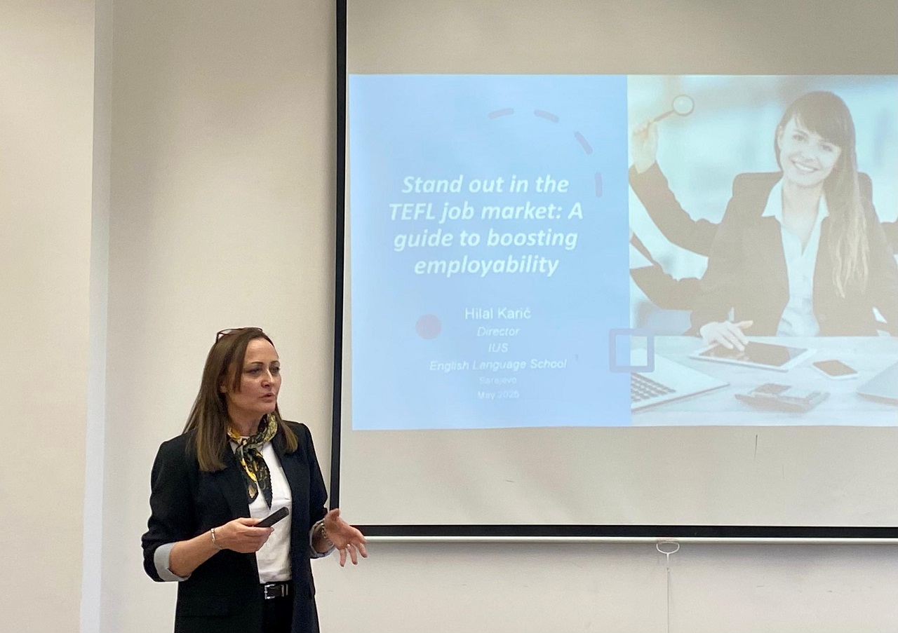 27 Mayıs 2025 Salı günü, Uluslararası Saraybosna Üniversitesi'nde (IUS) İngilizce Öğretim Metodolojisi dersine (ELT322.1) kayıtlı öğrenciler, IUS Yaşam Boyu Öğrenim Merkezi – IUS Life ve IUS İngilizce Dil Okulu (ELS) Direktörü Hilal Karić, MBA tarafından verilen ilham verici bir konuk konuşmaya katılma fırsatını bulmuşlardır.