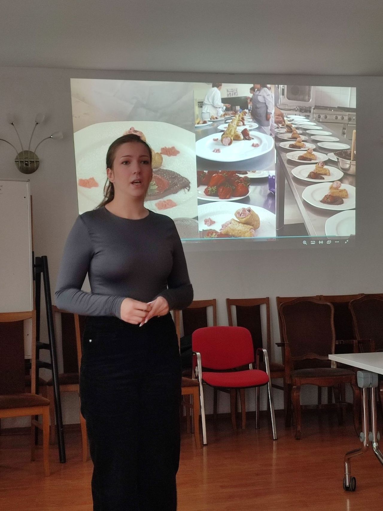 Bu, okuldan üç kişilik ekibin önemli başarılar elde ettiği Portekiz'in Fatima kentinde düzenlenen TEF Harmanlanmış Beceriler Yarışması'nı yansıtmak için bir fırsattı. TEF projesinde en etkileyici izi bırakan yarışmacı Elma Hodžić, Fatíma'nın Canolli Candel'i adlı yaratıcı ve lezzetli bir tatlı hazırladı. Bu tatlı lezzetin tarifini ve yapımındaki yenilikçi yaklaşımını sundu.